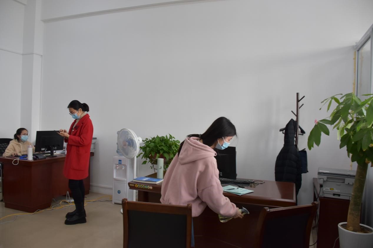 科学规范防控疫情。本次消毒任务由学院党委书记杨期勇带领指导工作,确保消毒工作顺利开展进行。下午时,消毒小组在整装齐备后准时开始消毒防疫工作。消毒人员对办公室进行深入、全面的消毒,确保没有卫生死角。