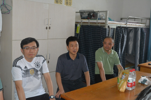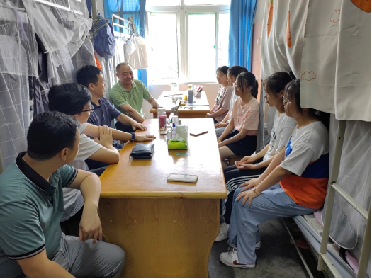 7月18日下午,beat365英国官网网站院长汤明、党委书记杨期勇、副书记张杨帆及学生口辅导员一行来到学生寝室,亲切看望慰问暑期考研和科研实践留校学生,深入了解学生的生活、学习和思想状况。