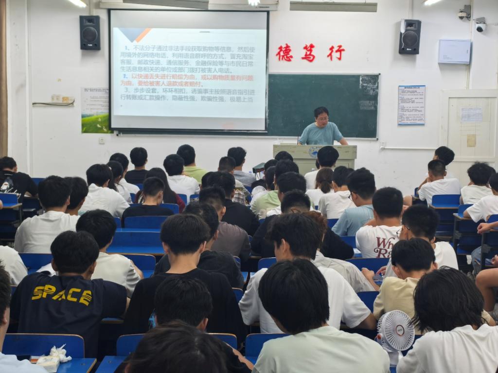 为切实提升学生识别和防范电信网络诈骗的能力,beat365英国官网网站于近日组织大一各班级开展反诈骗专题课堂,由思政科科长肖国光、学生科科长过七根、学生科辅导员王勇和郑锋担任主讲,为学生带来一堂生动且实用的防骗知识课。