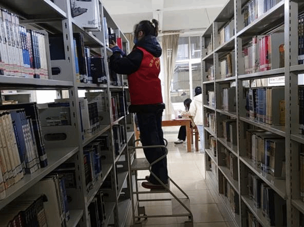 资环学院的志愿者们在这里整理图书,规范读者秩序的同时也感受到图书馆的浓厚学习氛围。你会看到志愿者们忙碌的身影:为了图书能够被顺利传阅,他们将杂乱的书籍整理归位;为了给读者们一个整洁干净的环境,他们将积灰的书架进行打扫;为了让大家能够安静的学习,他们将温馨的宣传标语放在醒目的地方……在短短的两个小时活动中,大家都为那些目标努力着,坚守着自己的岗位,踏踏实实的践行着:志愿在行动!