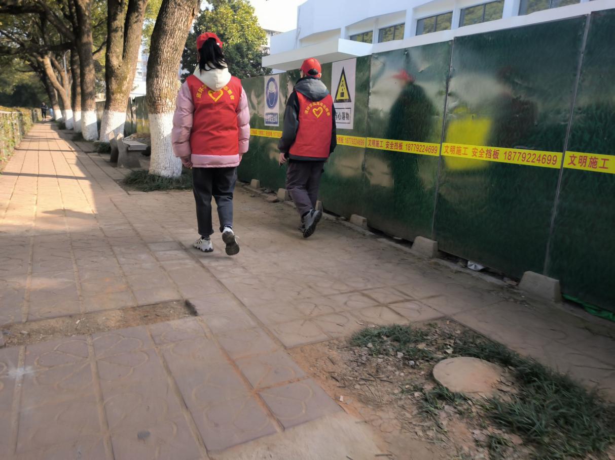巡逻过程中,志愿者们分为三组,在学校的各个地方、角落进行安全巡逻检查。他们细心的对任何可能有安全隐患地方进行检查,劝阻学生靠近危险地带。他们蹲下身、仰起头、动起手仔细察看,力求做到全覆盖、无缝隙、不留白。在春光明媚的上午,他们的身影出现在学校的各个角落,志愿者们用自己的微薄之力点亮校园,守卫校园安全。