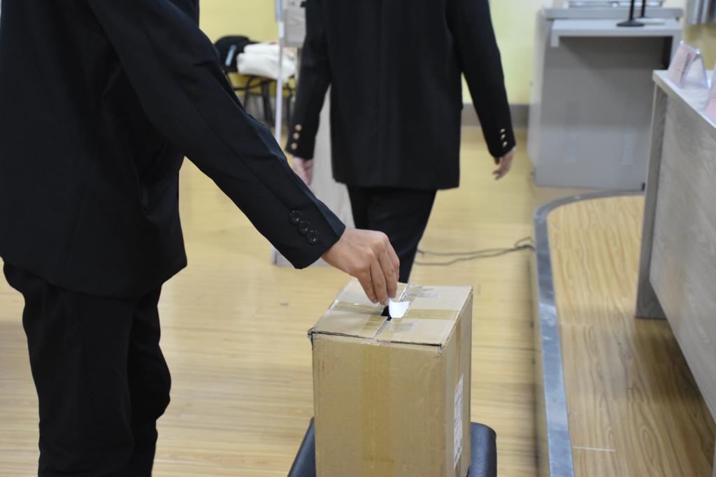 紧接着大会进入下一项内容:宣布候选人名单,本次学生会主席候选人有:李鑫伟,王恒洋,易雪珂,曹嘉玮。各候选人就自己的基本情况,工作任职及设想进行演讲,在候选人依次发言后,由学生代表投票选举新一届学生会主席。此次选举工作严格规范选举程序,切实做到公平公正公开。