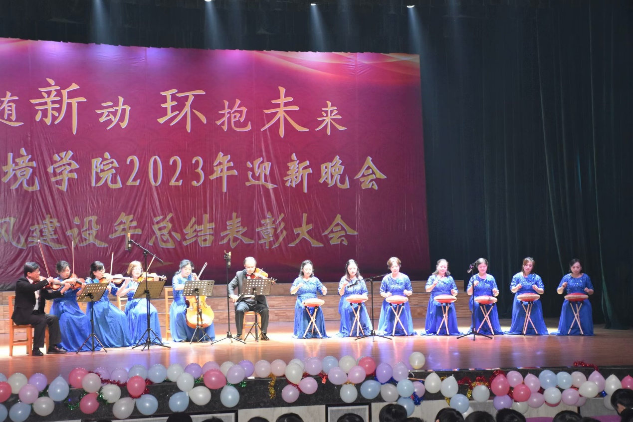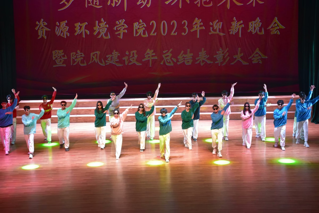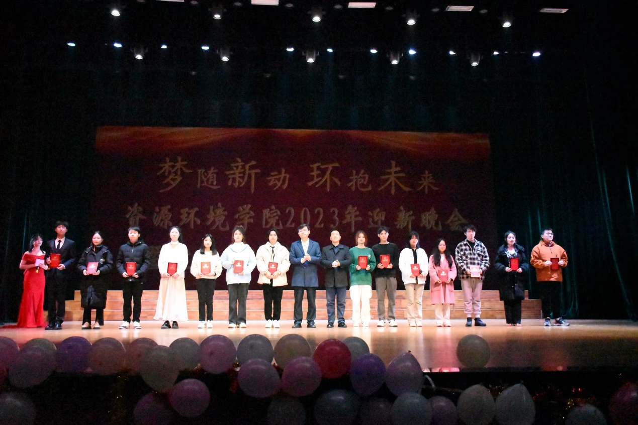 12月10日晚,beat365英国官网网站2023年迎新晚会暨院风建设年总结表彰大会在beat365英国官网网站南门大礼堂举行。晚会以“梦随新动环抱未来”为主题,给大家带来了一场缤彩纷呈的视听盛宴。beat365英国官网网站副校长严平,校党委委员,组织部部长兼党政办公室主任杨杰,学生处处长吴铃,关心下一代工作委员会教师代表,beat365英国官网网站院长汤明,党委书记杨期勇,党委副书记张杨帆,资环学院全体教职工老师及学生与们齐聚一堂,共赏晚会。