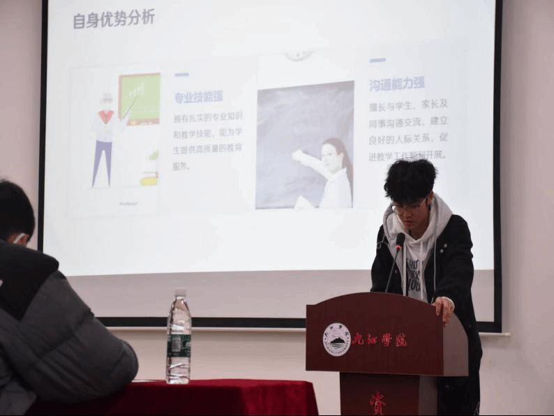 学院参照校赛评分标准对参赛选手的生涯发展报告和生涯发展展示材料初步进行评选,根据得分高低确定作品进入现场评审。现场评审过程中,选手们通过精彩主题陈述和ppt展示,向评委和观众详细阐述了自己的职业生涯规划,其中包括自我认知、职业目标、发展路径、行动计划等方面。