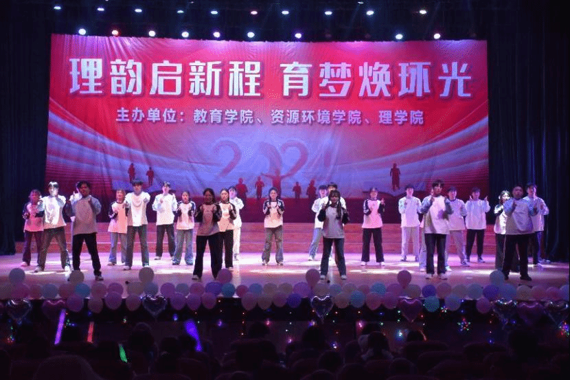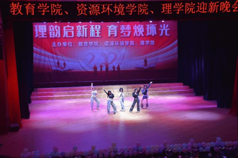 12月21日晚,beat365英国官网网站、教育学院、理学院主办的“理韵启新程,育梦焕环光”迎新晚会在beat365英国官网网站南门大礼堂顺利举行,现场氛围热烈,资环学院、教育学院、理学院院领导、教师代表及2024级全体新生齐聚一堂,共赏晚会。