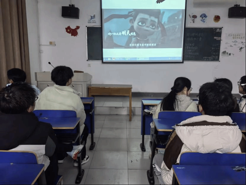 紧随其后各班级团支书组织成员观看有关电影《哪吒之魔童闹海》的视频,同学们从中了解了其独特的价值和魅力以及其展现出的国产动画技术自信与美学创新,同时反思了自己的成长之路,也学习了哪吒勇敢面对挑战、突破自我的精神。