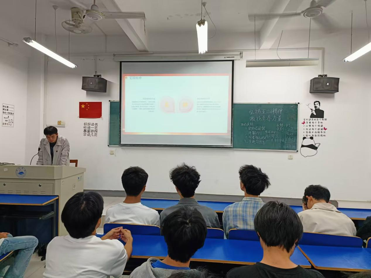 在齐唱团歌结束过后,团日活动准时开始。各班团支书和组织委员组织各班开展“漫溯五四知识长河,点亮青春理想灯塔”团日活动,主讲人围绕五四运动的历史脉络以及精神内核展开叙述,带领团员青年深入了解五四运动的历史背景、精神内涵和时代价值,增强其历史使命感与责任感,引领其树立正确的世界观、人生观和价值观。