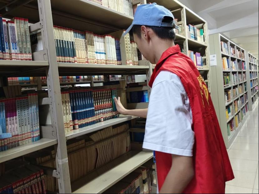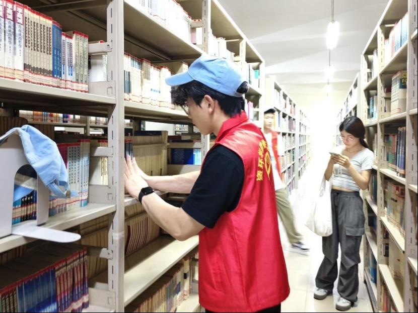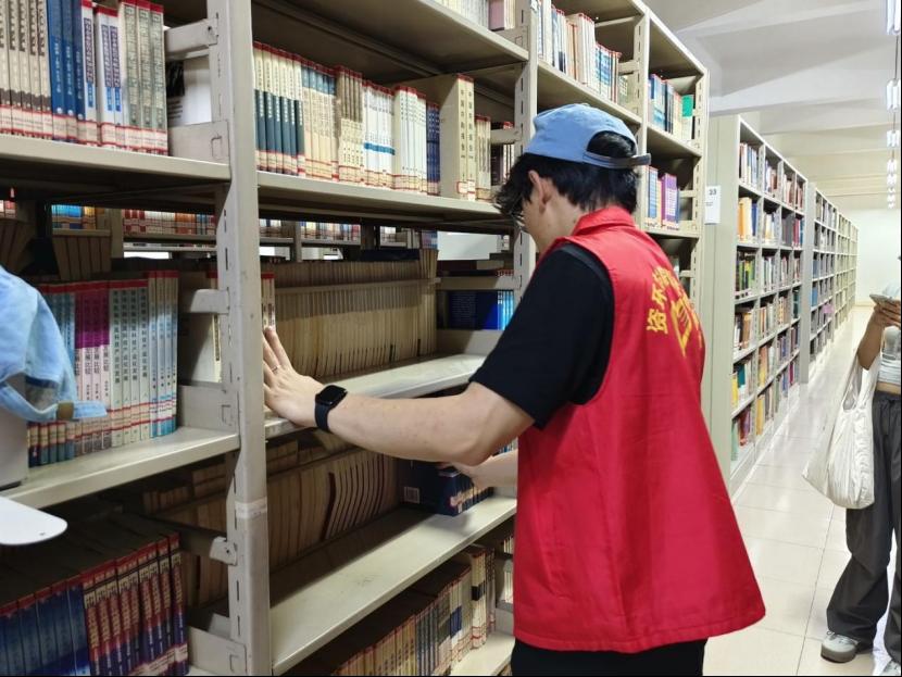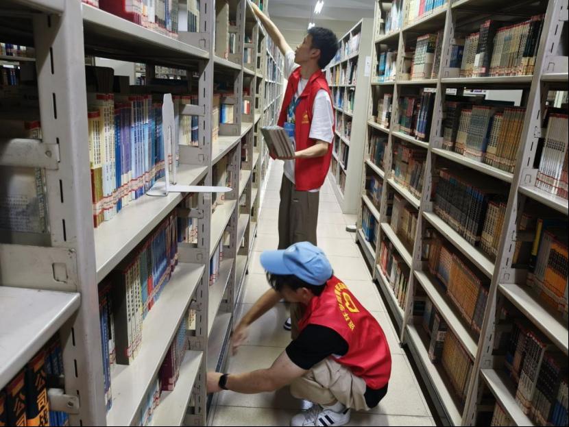 活动当天,志愿者们早早抵达图书馆。在图书馆工作人员的耐心指导下,大家明确了各自的任务,迅速投入到工作中。志愿者们负责图书整理与归架工作,他们穿梭在书架之间,根据图书分类编号,将借阅归还的书籍一一归位,仔细核对书脊标签,确保每一本书都能“回到正确的家”。面对杂乱的书架,志愿者们有条不紊地整理,原本无序的图书在他们的努力下变得整齐有序,方便读者快速找到所需书籍。