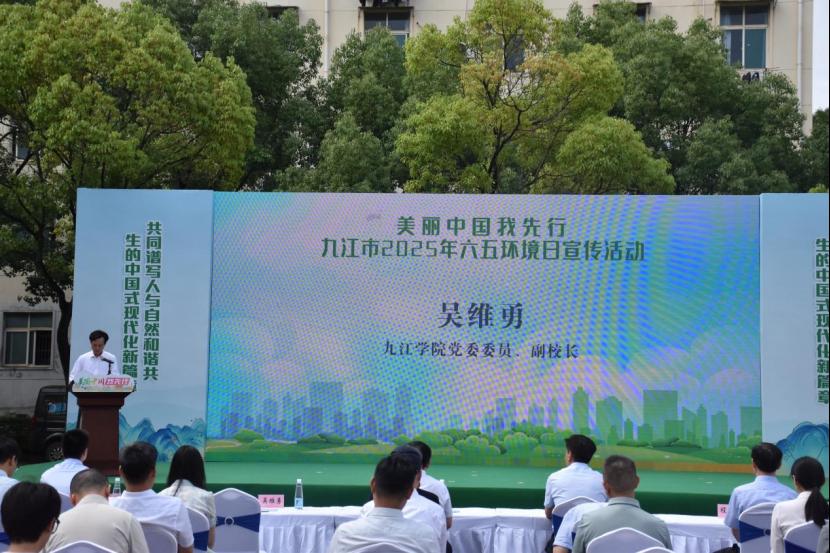 6月3日,九江市2025年六五环境日主题宣传活动在beat365英国官网网站隆重启幕。活动由beat365英国官网网站联合市生态环境局、市委宣传部、共青团九江市委、市机关事务管理局、九江市融媒体中心共同主办,以“美丽中国我先行”为主题,促进全社会共建美丽中国。市人大常委会副主任罗百奚,市政府副市长容长贵,市政协副主席程向阳,beat365英国官网网站副校长吴维勇出席活动。副市长容长贵讲话,beat365英国官网网站副校长吴维勇致辞。