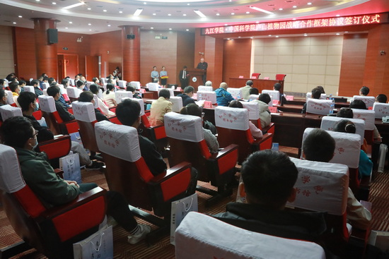 签订仪式后,召开了学术报告会,中国科学院庐山植物园主任黄宏文研究员作了主旨报告。