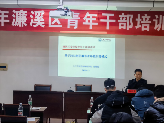 会上,杨期勇教授做了《基于河长制的城市水环境治理模式》的主题讲座,从中国河长制提出的背景、九江城市水环境现状与存在问题、基于河长制的水环境治理模式等三个方面进行了阐述。同时,杨期勇教授也向与会领导和学员介绍了beat365英国官网网站学科专业、教学科研及社会服务情况,使濂溪区政府各级部门进一步了解beat365英国官网网站,为beat365官网与濂溪区各级部门的项目合作、学生就业、资源共享等方面提供了契机。