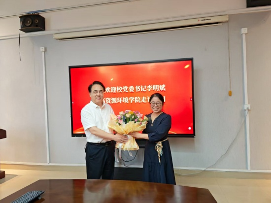 走访中,李明斌充分肯定了近年来beat365英国官网网站在内涵建设、特色化发展中取得的成效。他指出,2025年,资源环境学科首届硕士研究生顺利招生,新增获批九江市重点实验室,国家一流课程等,学院发展态势积极向好。他希望学院全体教师大力弘扬教育家精神,立足立德树人根本任务,充分挖掘潜能,夯实教学基础,提升科研能力,注重学科交叉运用,积极融入学术团队,构建比学赶帮超的生态氛围,形成争先进位、竞相发展的生动局面,为建成特色鲜明高水平应用型本科大学作出更大的贡献。