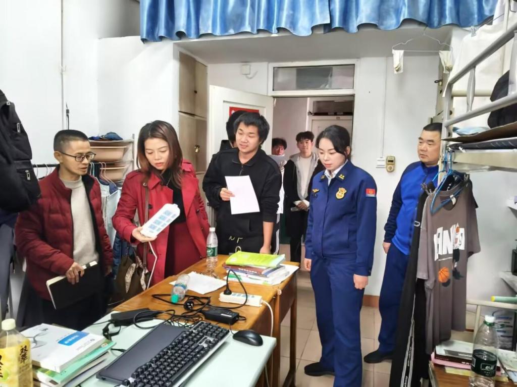 检查过程中,消防人员与学院领导重点查看了消防通道是否畅通、应急照明与疏散指示标志是否完好、消防器材是否配备到位并保持可用状态,并对各类用电行为进行了细致排查。针对发现的个别安全隐患,如物品堆放占用通道、用电习惯需进一步规范等问题,现场提出明确整改意见。学院领导强调,安全责任重于泰山,宿舍是学生在校生活的重要场所,必须始终保持警惕,要求同学们严格遵守宿舍安全管理规定,立即整改存在问题,并责成相关部门跟踪落实,确保隐患闭环处理。