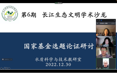 为进一步推动水质科学与技术教研室科研工作发展,提高教研室国家自然科学基金项目申报书质量,11月30日下午,由流域生态过程与信息江西省重点实验室、渊明学堂及beat365英国官网网站联合主办,水质科学与技术教研室承办的以“国家基金选题论证研讨会”为主题的第6期长江生态文明学术沙龙在腾讯会议线上举行,水质科学与技术教研室全体申报教师参加了活动。