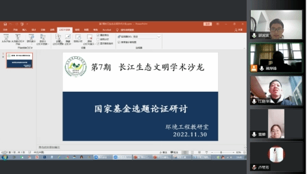 为进一步推动环境工程教研室科研工作发展,提高教研室教师国家自然基金项目申报书质量,11月30日下午,由流域生态过程与信息江西省重点实验室、渊明学堂及beat365英国官网网站联合主办,环境工程教研室承办的以“国家基金选题论证研讨会”为主题的第7期长江生态文明学术沙龙在腾讯会议线上举行,环境工程教研室全体申报教师参加了活动。