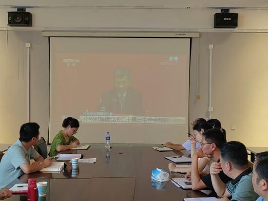 会上,学院副院长徐冰洁领学了《中国共产党第二十届中央委员会第三次全体会议公报》,解读了进一步全面深化改革、推进中国式现代化的历史背景、战略部署、基本原则、重大意义等方面。